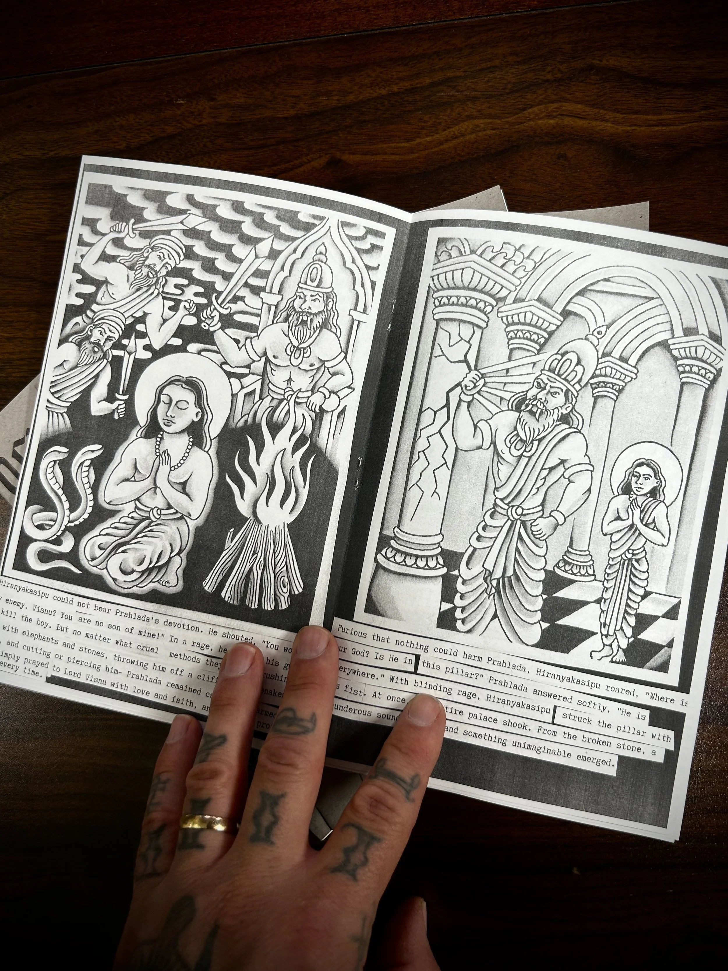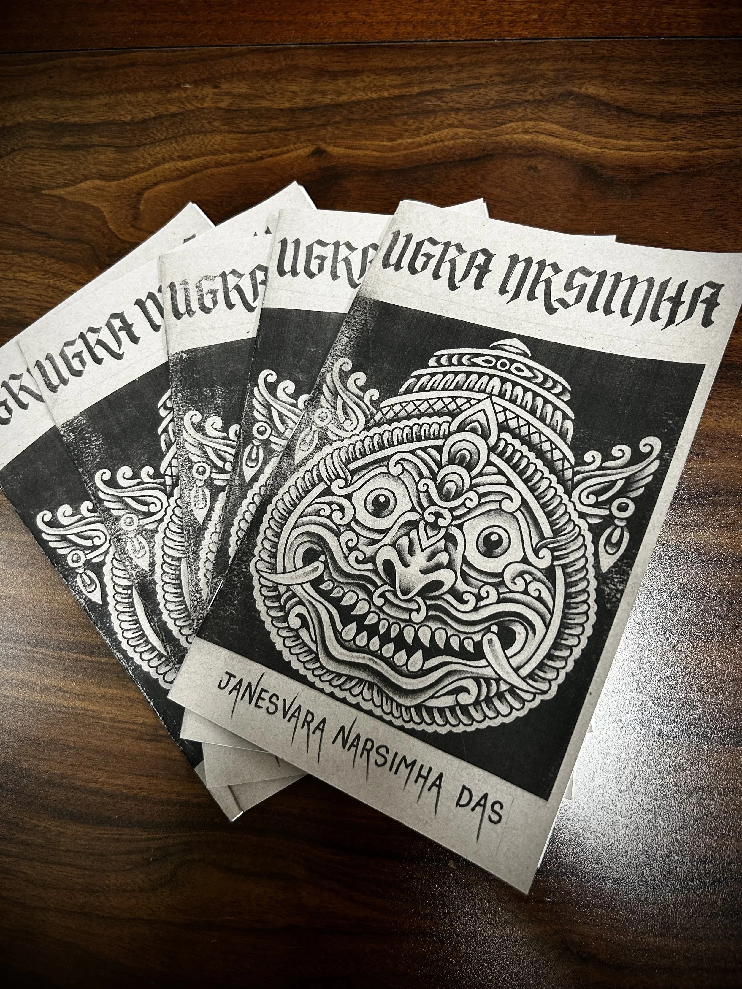 Categories: Select a Category Men Women Books Prayer Flags Shop Men | Women | Books | Prayer Flags | Narasiṃha Block Print T-Shirt from $20.00 Ugra Nrsimha Zine $11.00 Narasiṃha Block Print T-Shirt from $20.00
